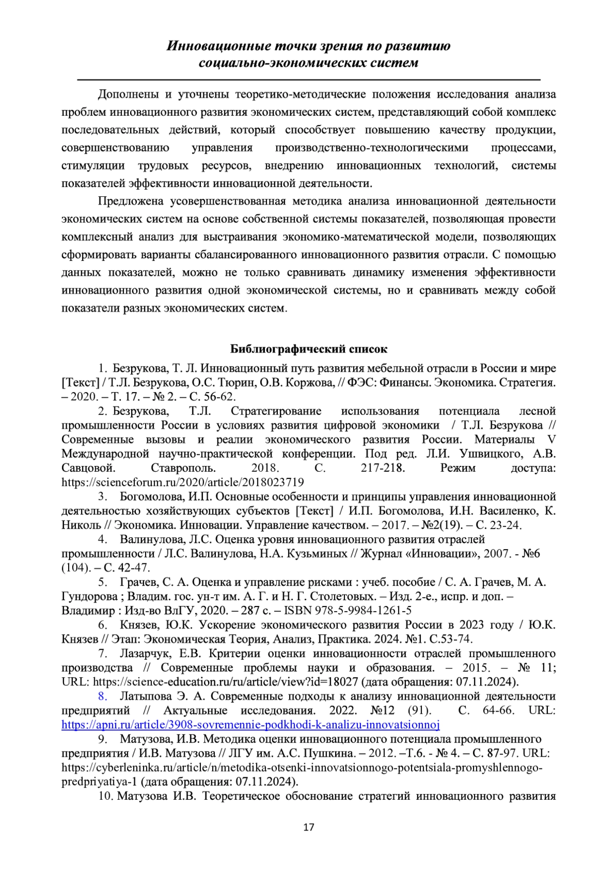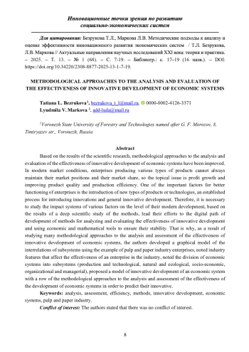 Статья: МЕТОДИЧЕСКИЕ ПОДХОДЫ К АНАЛИЗУ И ОЦЕНКЕ ЭФФЕКТИВНОСТИ ИННОВАЦИОННОГО РАЗВИТИЯ ЭКОНОМИЧЕСКИХ СИСТЕМ (2025)