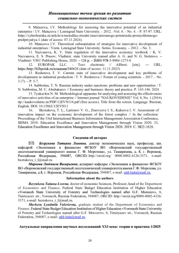 БЕЗРУКОВА Т. Л., МАРКОВА Л. В. МЕТОДИЧЕСКИЕ ПОДХОДЫ К АНАЛИЗУ И ОЦЕНКЕ ЭФФЕКТИВНОСТИ ИННОВАЦИОННОГО РАЗВИТИЯ ЭКОНОМИЧЕСКИХ СИСТЕМ // АКТУАЛЬНЫЕ НАПРАВЛЕНИЯ НАУЧНЫХ ИССЛЕДОВАНИЙ XXI ВЕКА: ТЕОРИЯ И ПРАКТИКА. 2025. Т. 13 № 1 (68)