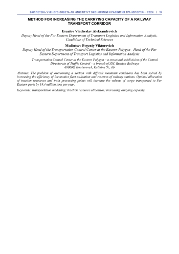 Статья: СПОСОБ ПОВЫШЕНИЯ ПРОВОЗНОЙ СПОСОБНОСТИ ЖЕЛЕЗНОДОРОЖНОГО ТРАНСПОРТНОГО КОРИДОРА (2025)