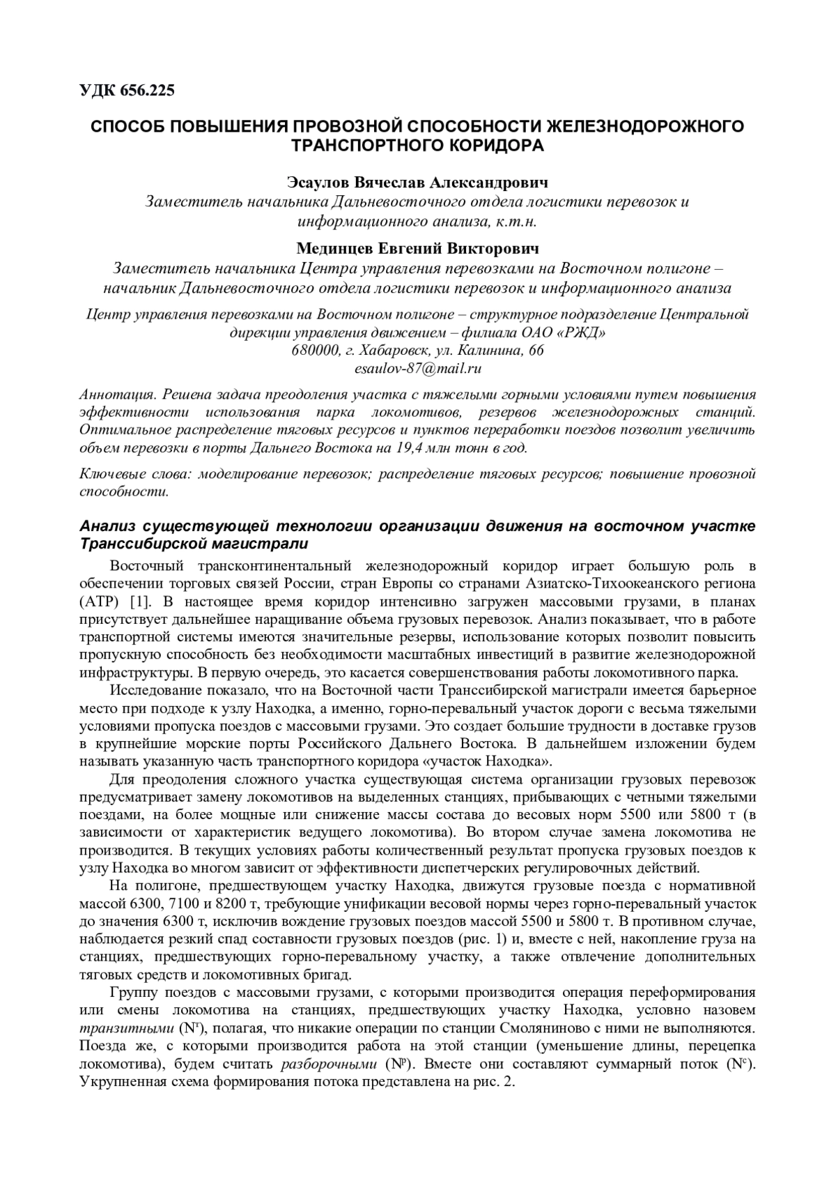 ЭСАУЛОВ В. А., МЕДИНЦЕВ Е. В. СПОСОБ ПОВЫШЕНИЯ ПРОВОЗНОЙ СПОСОБНОСТИ ЖЕЛЕЗНОДОРОЖНОГО ТРАНСПОРТНОГО КОРИДОРА // БЮЛЛЕТЕНЬ УЧЕНОГО СОВЕТА АО "ИЭРТ". 2025. № 10-1