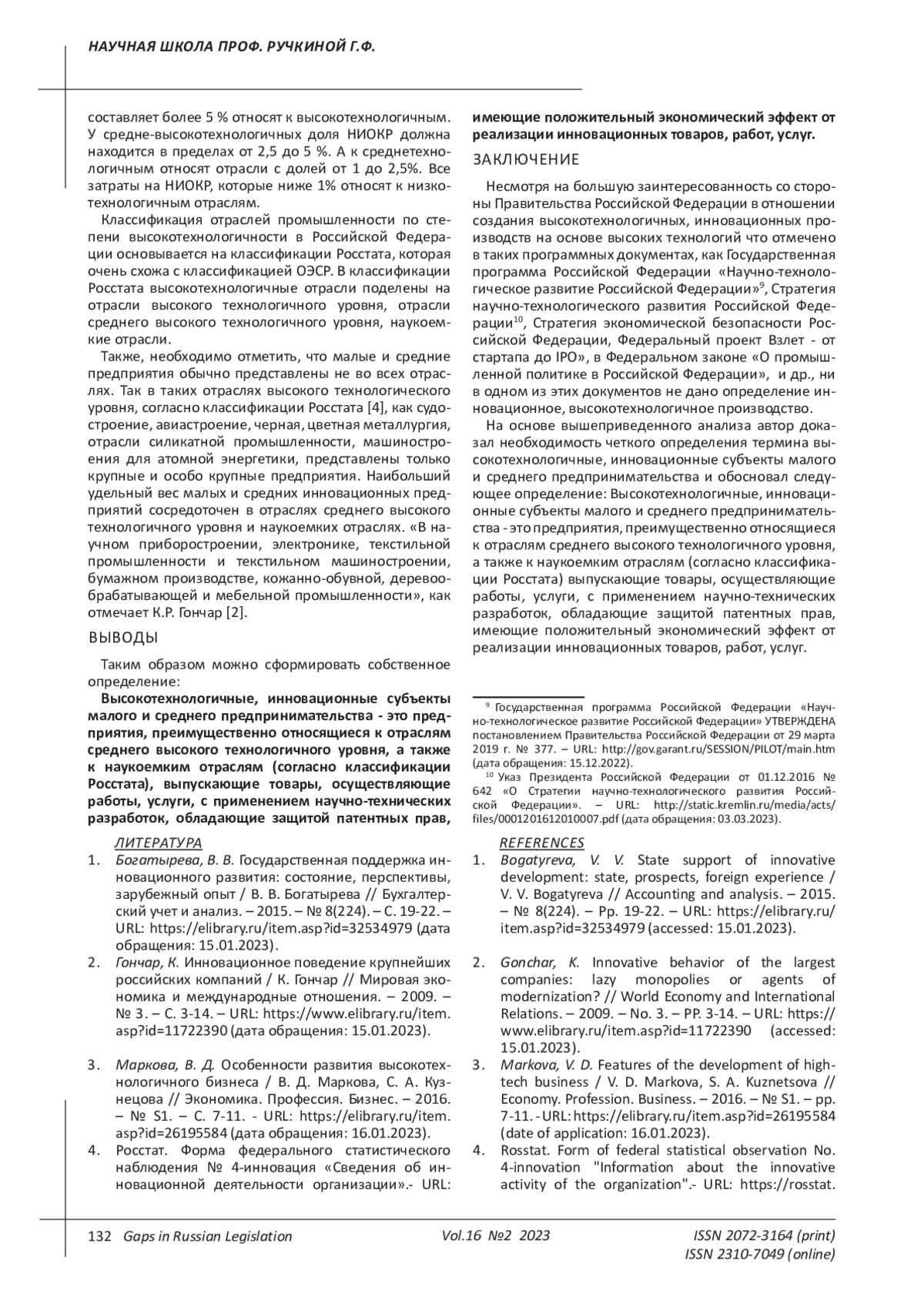 Статья: ОПРЕДЕЛЕНИЕ ПОНЯТИЯ ВЫСОКОТЕХНОЛОГИЧНЫЕ, ИННОВАЦИОННЫЕ СУБЪЕКТЫ МАЛОГО И СРЕДНЕГО ПРЕДПРИНИМАТЕЛЬСТВА (2023)