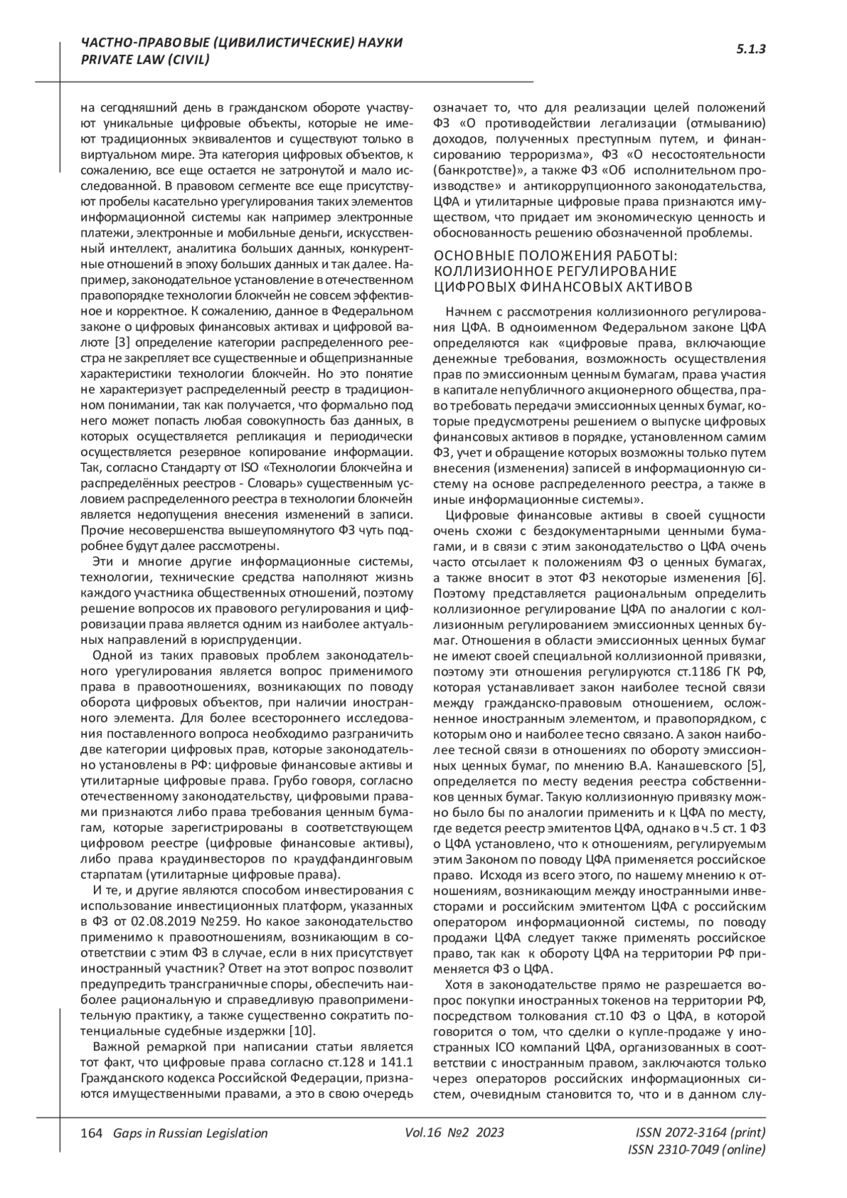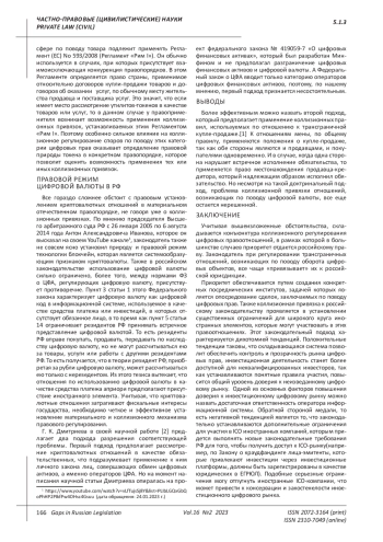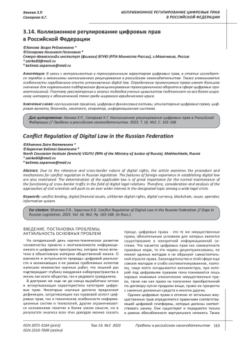 Статья: КОЛЛИЗИОННОЕ РЕГУЛИРОВАНИЕ ЦИФРОВЫХ ПРАВ В РОССИЙСКОЙ ФЕДЕРАЦИИ (2023)