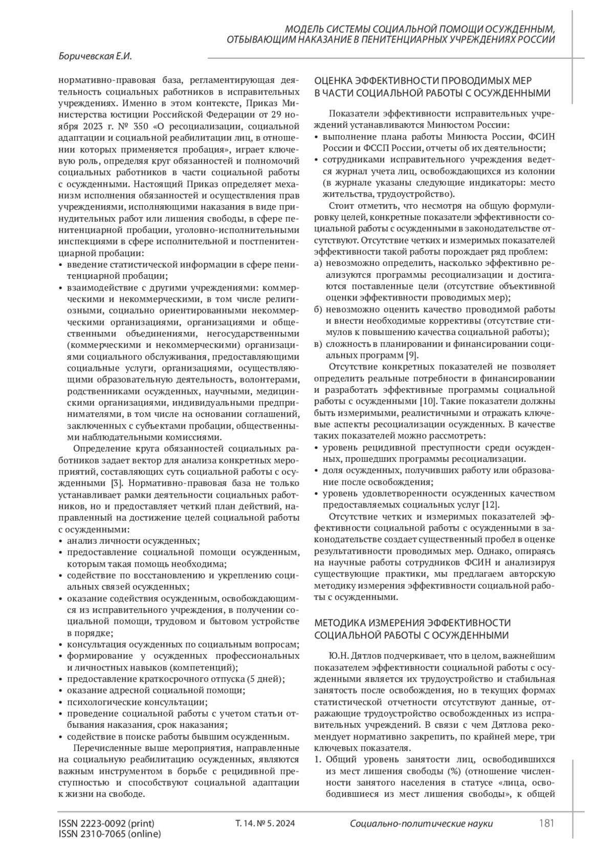 6. Еремеева А.А. Характеристика социальных сетей осужденных // Вестник ПНИПУ. Социально-экономические науки. 2020. № 1. С. 45-53. EDN: SDPYNJ