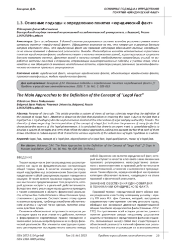 3. Боруленков Ю.П. Юридический факт как образ обстоятельства реальной действительности // Бизнес в законе. 2013. №1. С. 122-125. EDN: PWKDEP