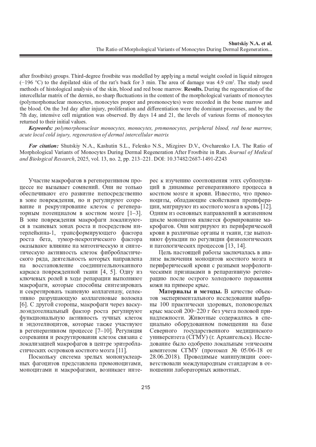 15. Шутский Н.А., Кашутин С.Л., Шагров Л.Л., Малявская С.И., Холопов Н.С. Содержание клеток в зонах дермы крыс в норме и на фоне метаболического синдрома при восстановлении после холодовой травмы // Журн. мед.-биол. исследований. 2022. Т. 10, No 2. С. 87-99. DOI: 10.37482/2687-1491-Z094 EDN: HCPZDC