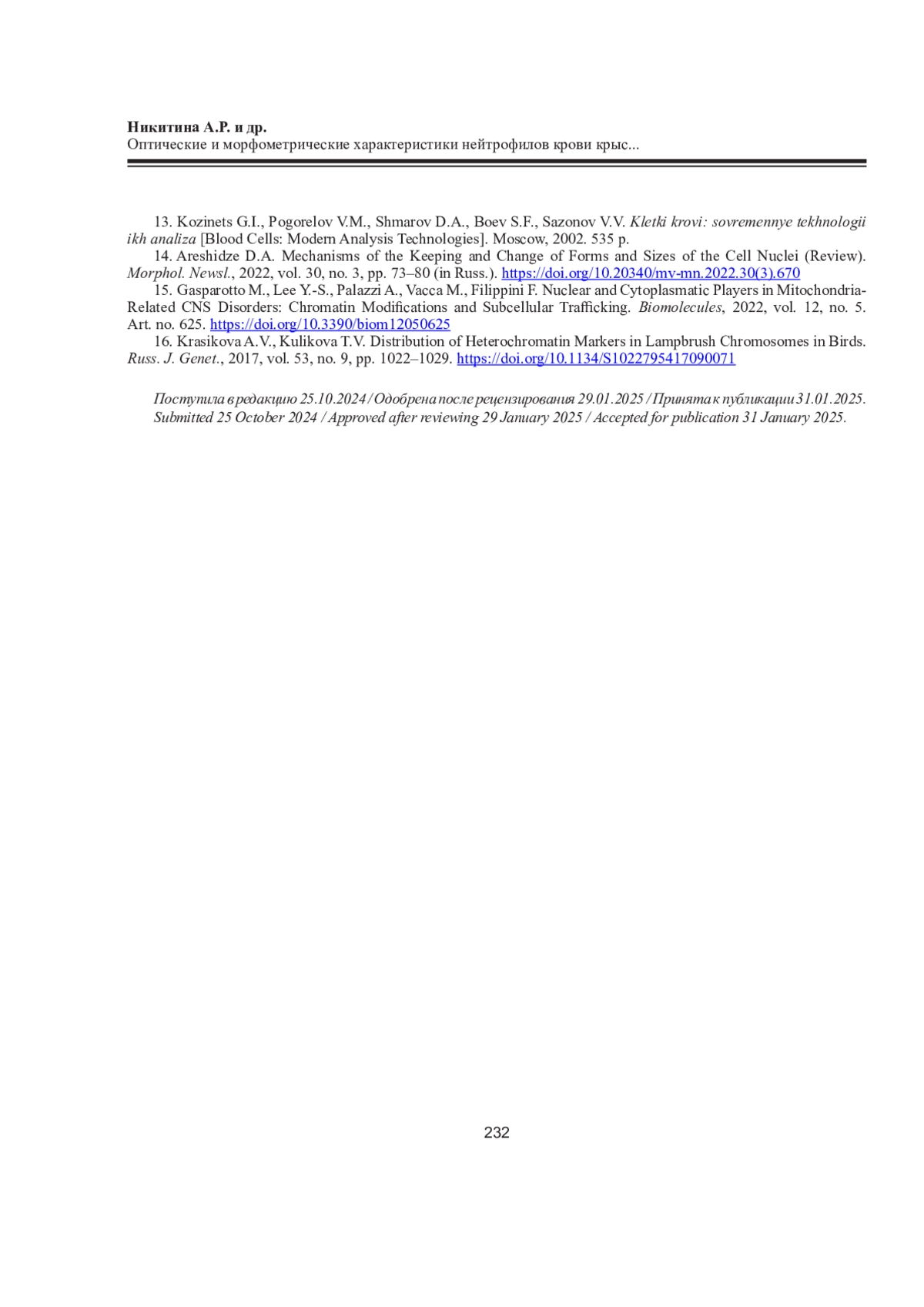 14. Арешидзе Д.А. Механизмы поддержания и изменений формы и размеров клеточного ядра (обзор) // Морфол. вед. 2022. Т. 30, No 3. С. 73-80. 10.20340/mv-mn.2022.30 (3).670. DOI: 10.20340/mv-mn.2022.30(3).670 EDN: GBWFLV