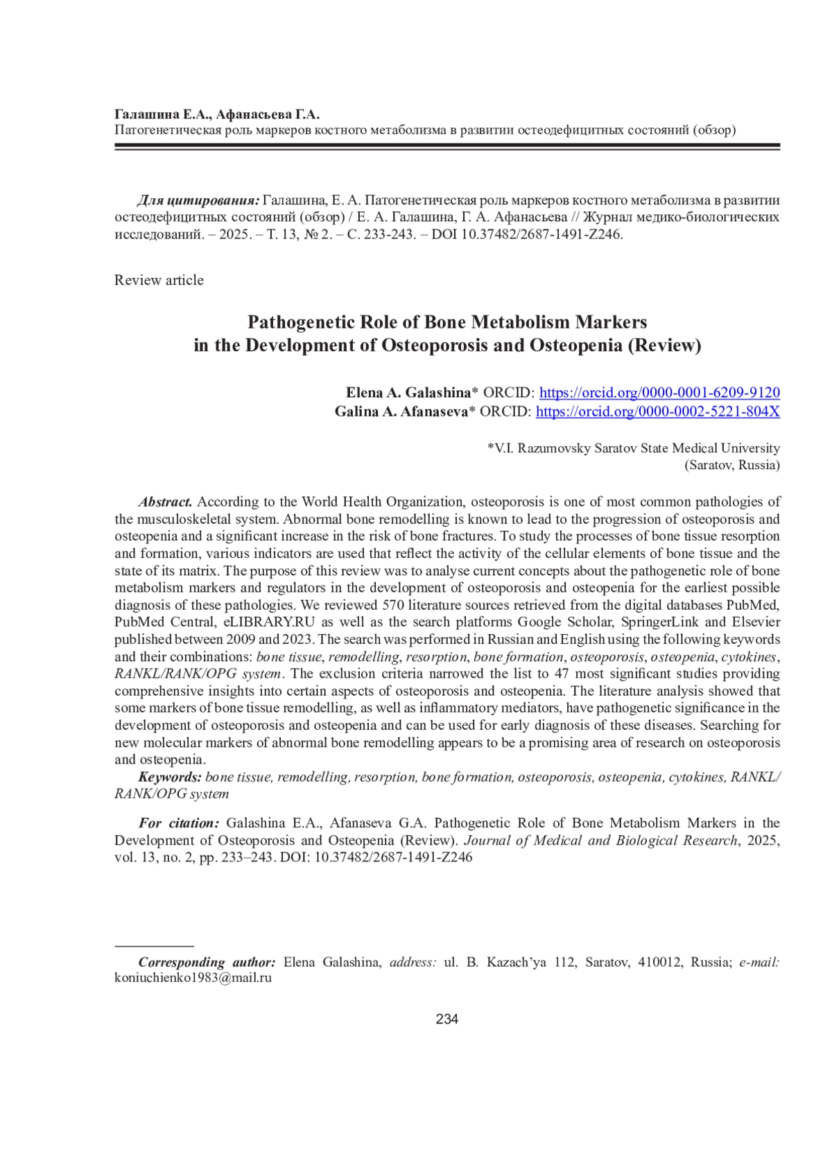 46. Астрейко М.О. Роль маркеров регуляции остеокластогенеза при остеопорозе // Бюл. Сев. гос. мед. ун-та. 2020. No 1. С. 225-226. EDN: JIAJTJ