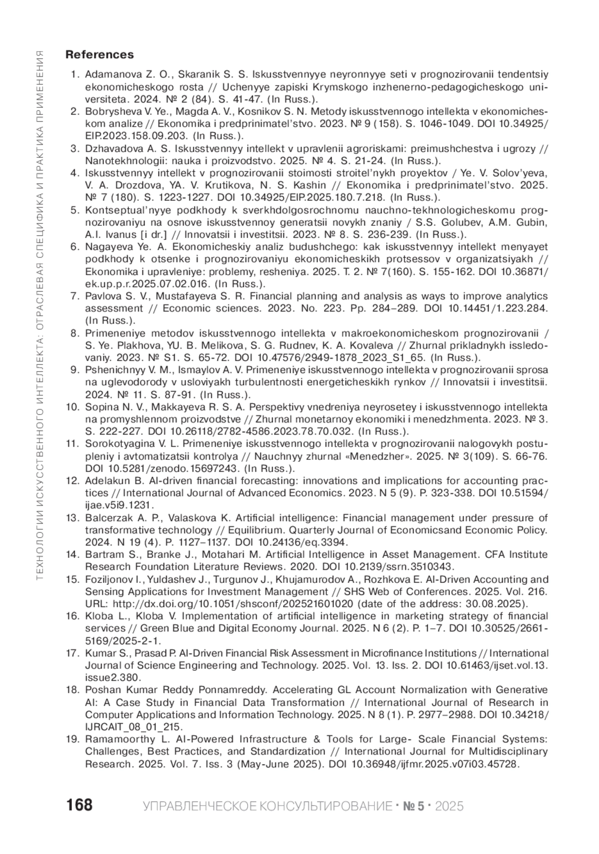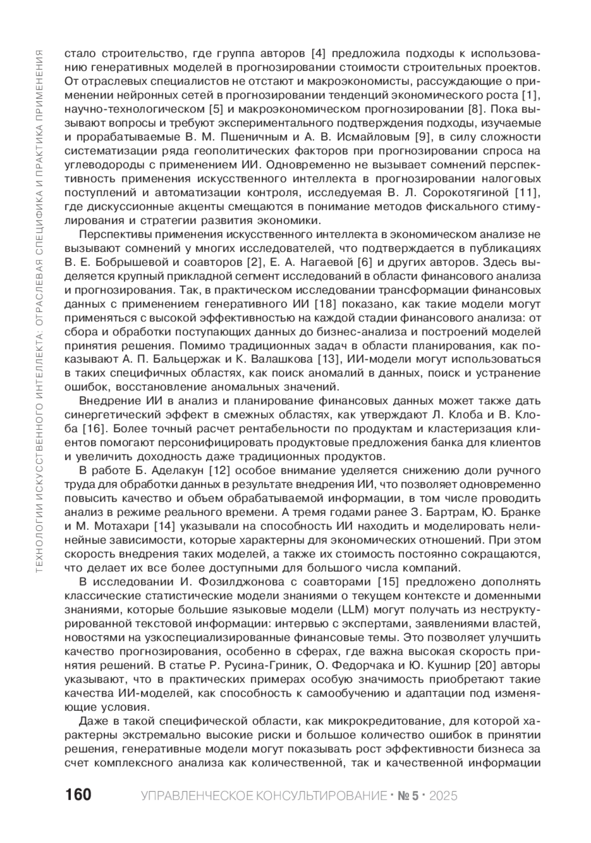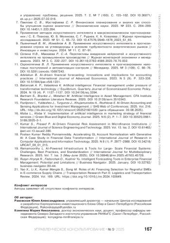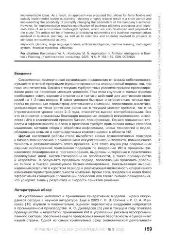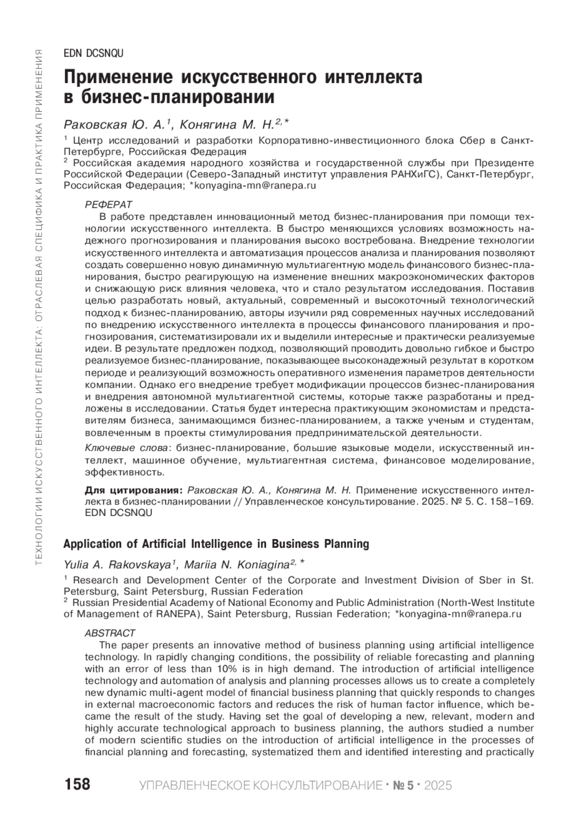 РАКОВСКАЯ Ю. А., КОНЯГИНА М. Н. ПРИМЕНЕНИЕ ИСКУССТВЕННОГО ИНТЕЛЛЕКТА В БИЗНЕС-ПЛАНИРОВАНИИ // УПРАВЛЕНЧЕСКОЕ КОНСУЛЬТИРОВАНИЕ. 2025. № 5 (191)