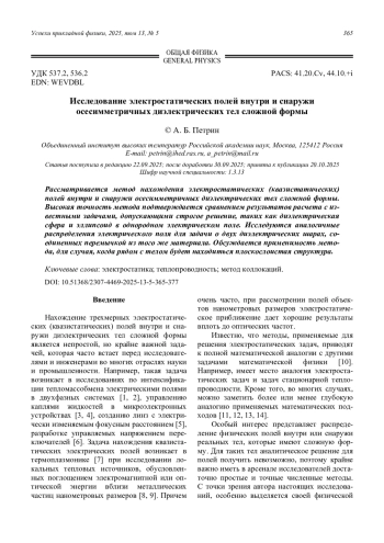 Рассматривается метод нахождения электростатических (квазистатических) полей внутри и снаружи осесимметричных диэлектрических тел сложной формы. Высокая точность метода подтверждается сравнением результатов расчета с известными задачами, допускающими строгое решение, таких как диэлектрическая сфера и эллипсоид в однородном электрическом поле. Исследуются аналогичные распределения электрического поля для задачи о двух диэлектрических шарах, соединенных перемычкой из того же материала. Обсуждается применимость метода, для случая, когда рядом с телом будет находиться плоскослоистая структура.