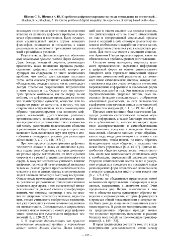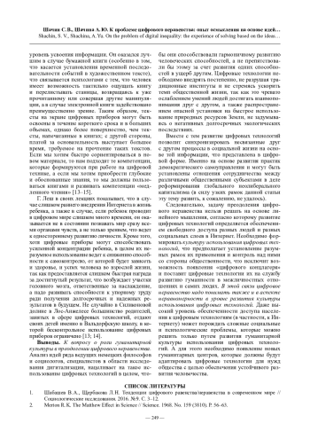 Введение. Статья посвящена проблеме цифрового неравенства. Она не может быть сведена только к обеспечению всем людям равного доступа к цифровым приборам и технологиям. Данная проблема имеет серьезную гуманитарную составляющую.
