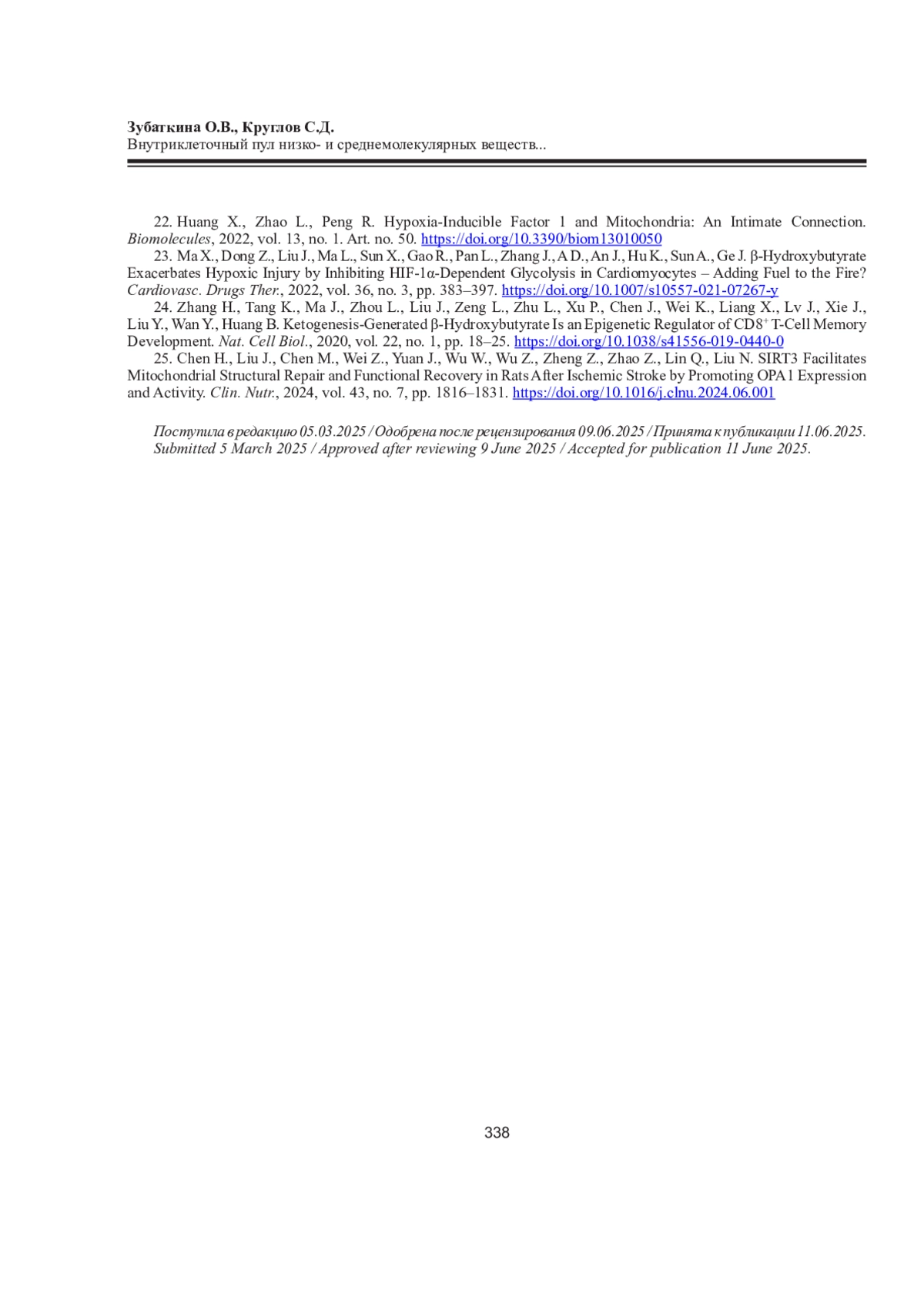 25. Chen H., Liu J., Chen M., Wei Z., Yuan J., Wu W., Wu Z., Zheng Z., Zhao Z., Lin Q., Liu N. SIRT3 Facilitates Mitochondrial Structural Repair and Functional Recovery in Rats After Ischemic Stroke by Promoting OPA1 Expression and Activity // Clin. Nutr. 2024. Vol. 43, No 7. Р. 1816-1831. DOI: 10.1016/j.clnu.2024.06.001