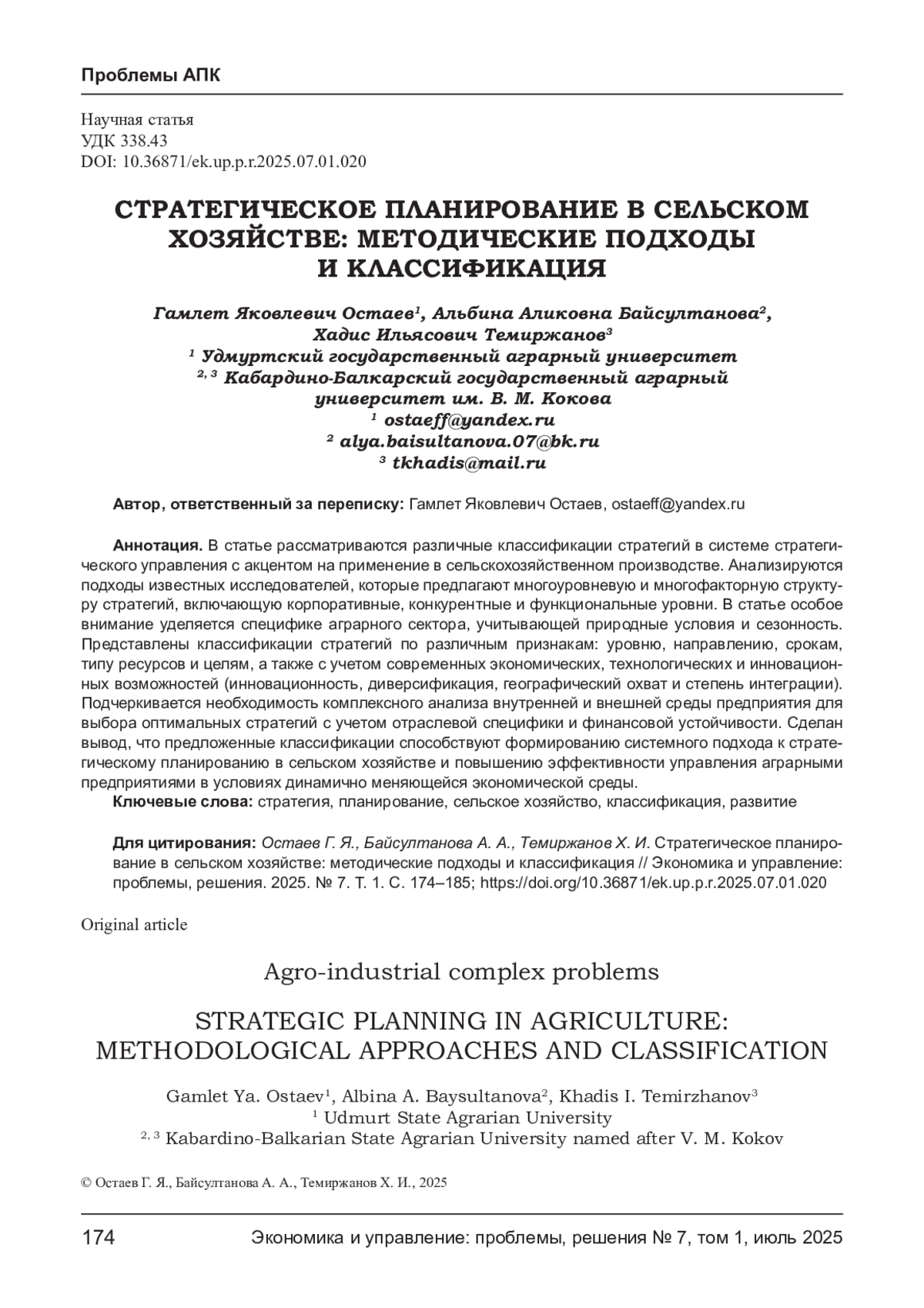 1. Акмаров П. Б., Алборов Г. Р., Кондратьев Д. В. и др. Роль искусственного интеллекта в цифровизации сельского хозяйства и проблемные вопросы его развития / Современные методы и технологии цифровизации, экономической безопасности и оптимизации учета, контроля и управления деятельностью хозяйствующих субъектов и публичных образований: Материалы Международной научно-практической конференции, Ижевск, 24 октября 2024 г. Ижевск: ООО “Издательство “Шелест”, 2025. С. 11-14. EDN: NQMHXC