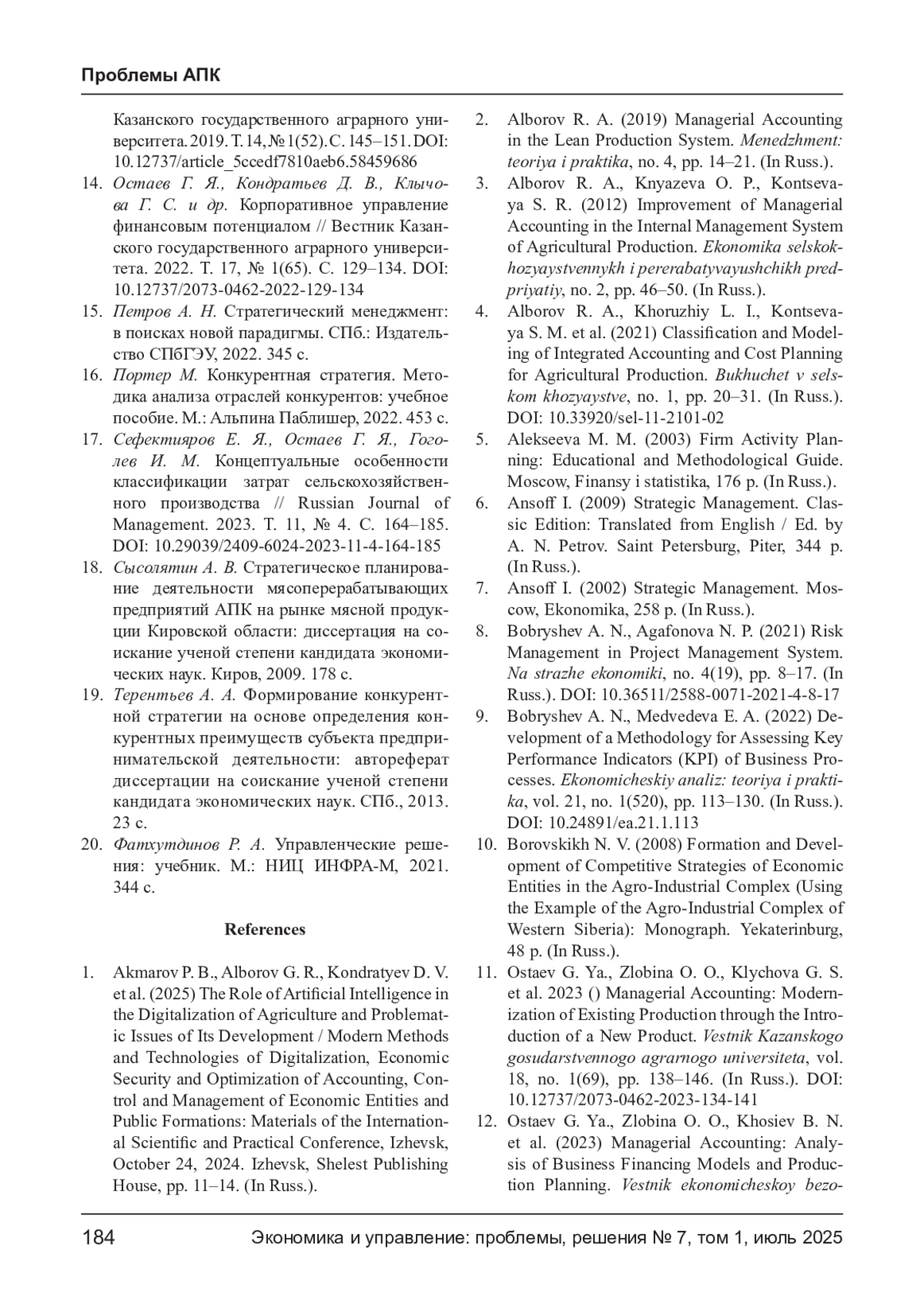 17. Сефектияров Е. Я., Остаев Г. Я., Гоголев И. М. Концептуальные особенности классификации затрат сельскохозяйственного производства // Russian Journal of Management. 2023. Т. 11, № 4. С. 164-185. DOI: 10.29039/2409-6024-2023-11-4-164-185 EDN: WXDBLO