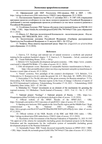 18. ESG development vector. Barometer of sustainable business transformation in Russia. - URL: https://sber.pro/publication/vektor-razvitiya-esg-barometr-ustojchivoj-transformaczii-biznesa-v-rossii (date of access: 05.11.2024).