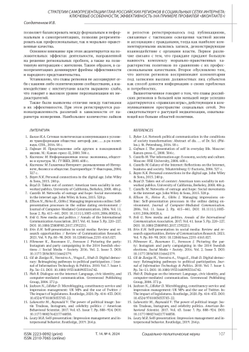 11. Filimonov K., Russmann U., Svensson J. Picturing the party: Instagram and party campaigning in the 2014 Swedish elections. Social Media + Society. 2016. Vol. 2. Issue 3. DOI: 10.1177/2056305116662179
