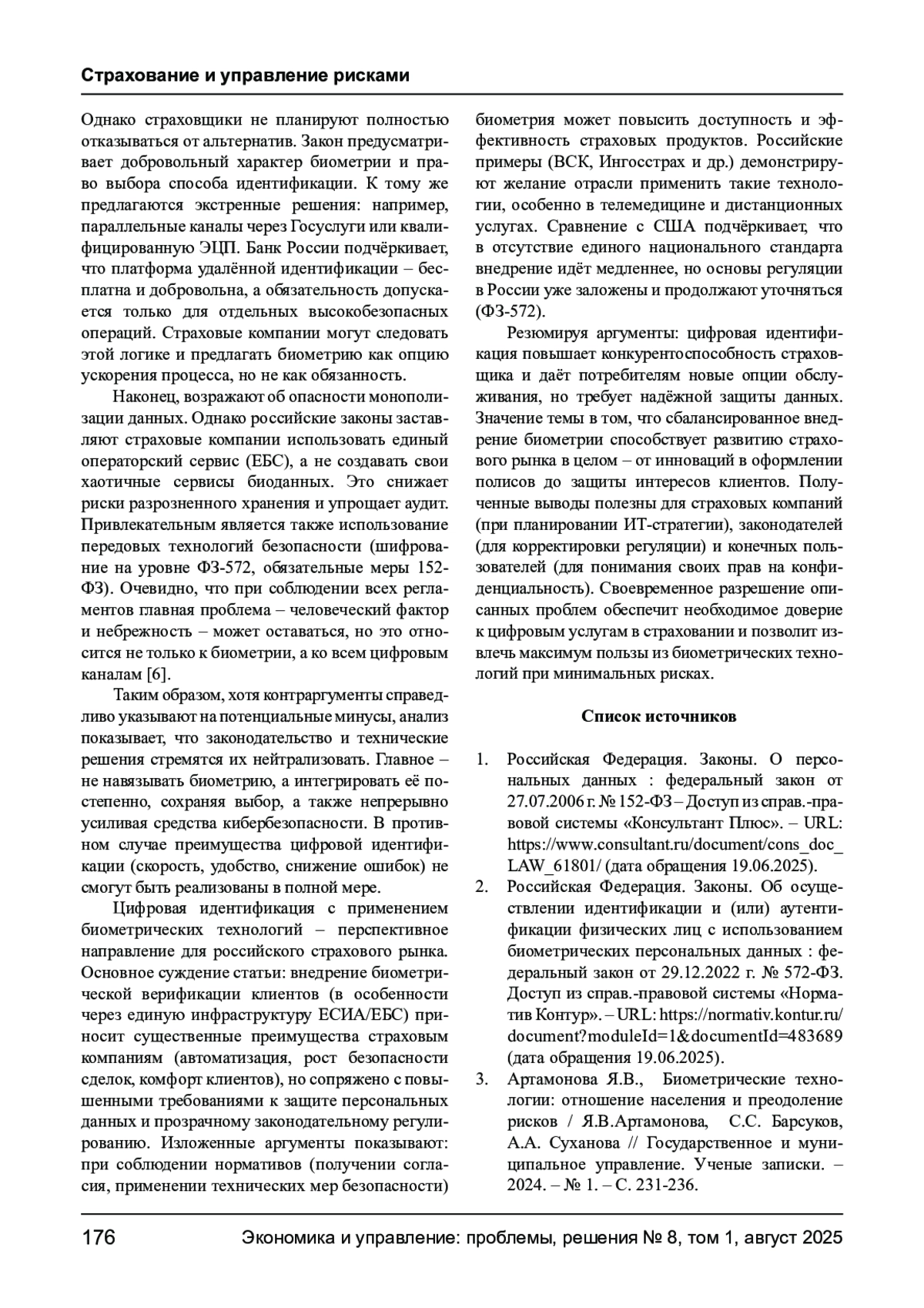 3. Артамонова Я.В., Биометрические технологии: отношение населения и преодоление рисков / Я.В.Артамонова, С.С. Барсуков, А.А. Суханова // Государственное и муниципальное управление. Ученые записки. - 2024. - № 1. - С. 231-236.