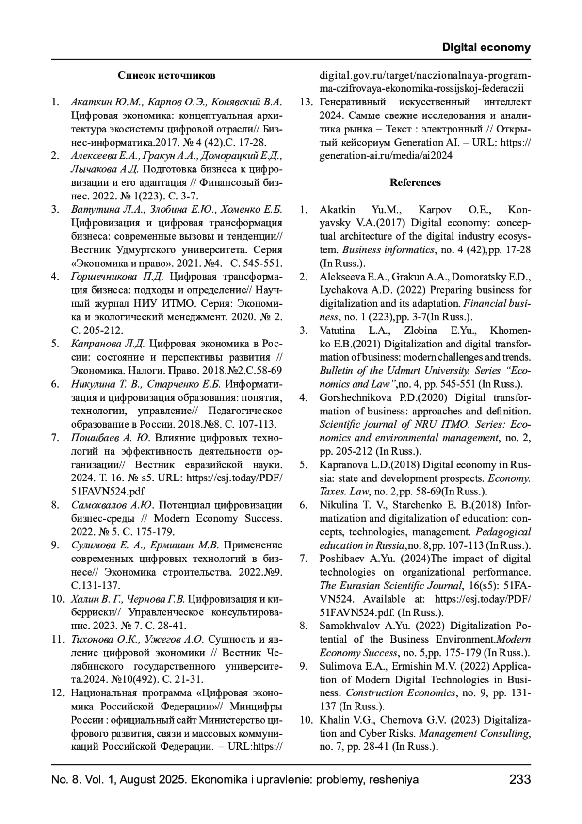 Журнал: ЭКОНОМИКА И УПРАВЛЕНИЕ: ПРОБЛЕМЫ, РЕШЕНИЯ