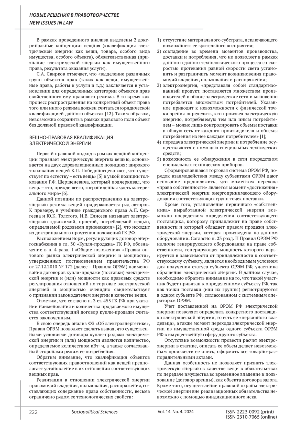 14. Тебенькова С.А. Электрическая энергия как объект гражданских прав // Вестник Удмуртского университета. 2013. Вып. 4. С. 186. EDN: RGSKPX