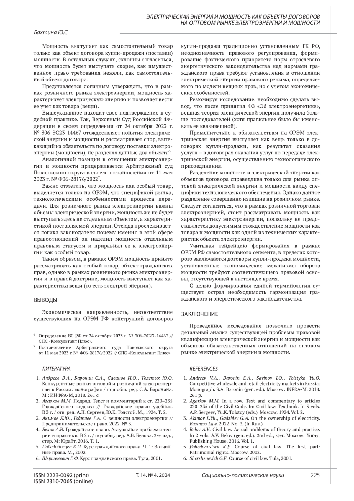 10. Матиящук С.В. Электрическая энергия и мощность как особые объекты гражданского оборота: вопросы теории и практики // Журнал российского права. 2008. № 12. С. 94-99. EDN: OALRZH