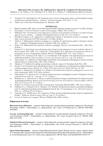 3. Механцев Б.Е. Нормализация применения статистико-математических методов в научно-педагогическом исследовании: автореф. дис. … канд. пед. наук. Сочи, 2011. 23 с.