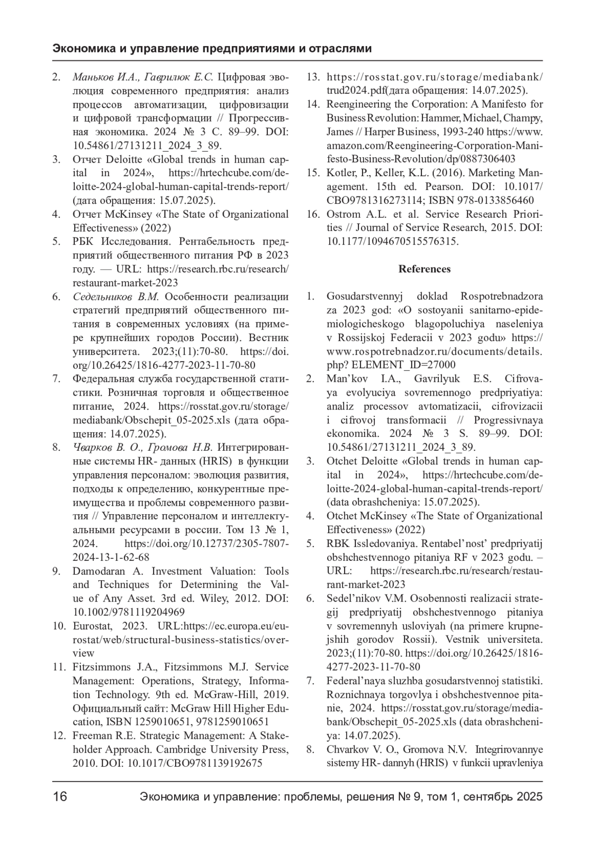 6. Седельников В.М. Особенности реализации стратегий предприятий общественного питания в современных условиях (на примере крупнейших городов России). Вестник университета. 2023;(11):70-80. DOI: 10.26425/1816-4277-2023-11-70-80