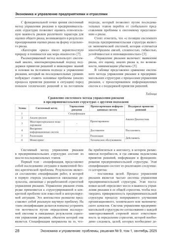 Статья: СИСТЕМНЫЙ МЕТОД УПРАВЛЕНИЯ РИСКАМИ В ПРЕДПРИНИМАТЕЛЬСКИХ СТРУКТУРАХ (2025)