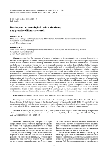 Цель статьи – обзор профессиональных научных позиций, иллюстрирующих методологическую сущность номологии как исследования форм бытования библиотековедческого знания. Основная задача – выявить возможности преобразования существующих типов концептуальных формообразований библиотековедческого научного знания, которые приобретают новые качества, развивают содержащиеся в них возможности и обогащают свое внутренне строение в процессе методологической реконструкции.