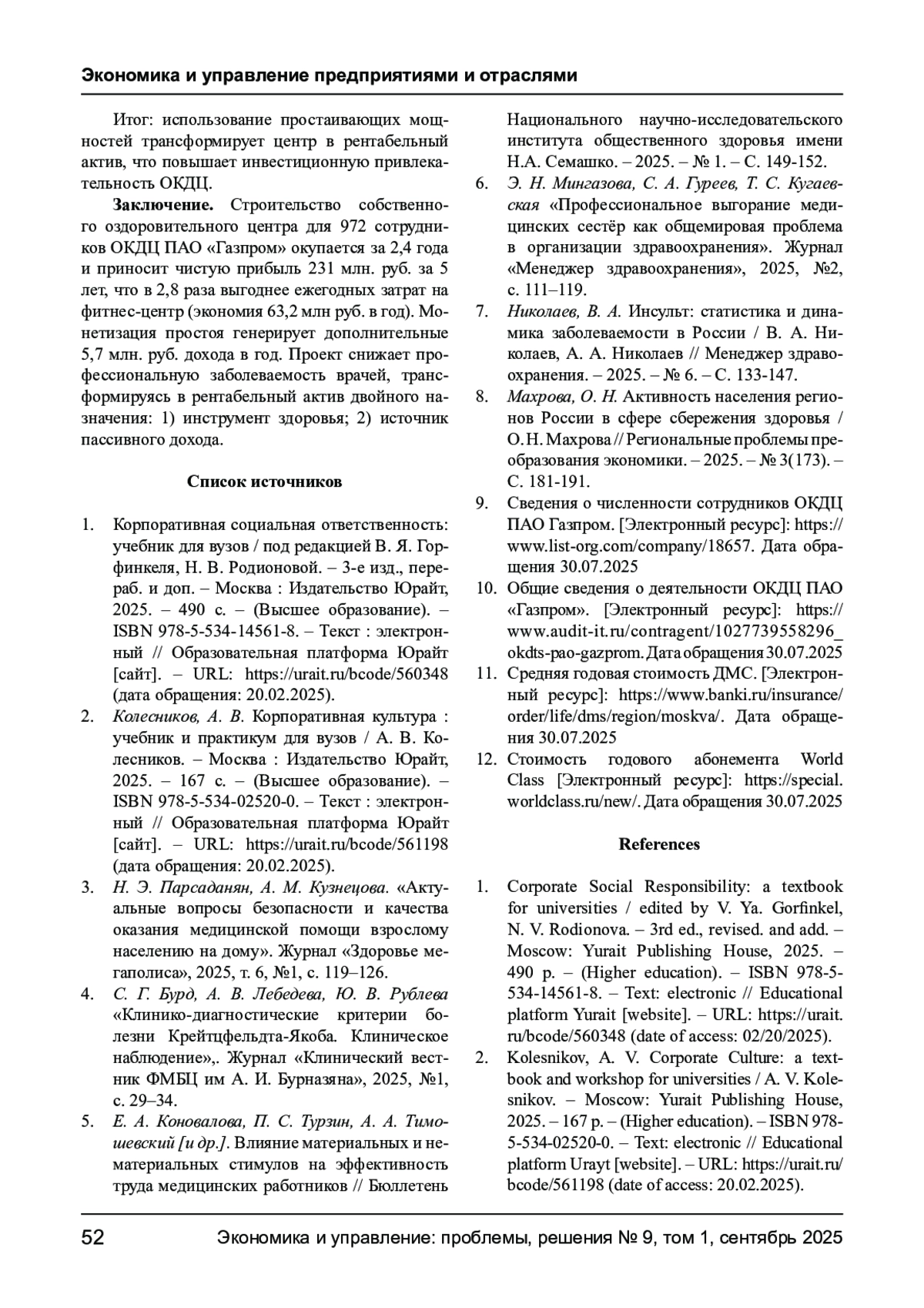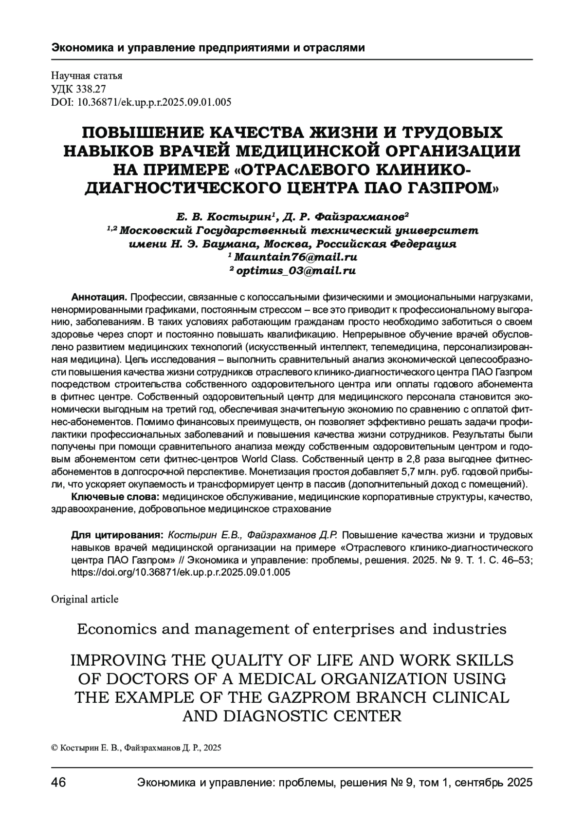 КОСТЫРИН Е. В., ФАЙЗРАХМАНОВ Д. Р. ПОВЫШЕНИЕ КАЧЕСТВА ЖИЗНИ И ТРУДОВЫХ НАВЫКОВ ВРАЧЕЙ МЕДИЦИНСКОЙ ОРГАНИЗАЦИИ НА ПРИМЕРЕ «ОТРАСЛЕВОГО КЛИНИКО- ДИАГНОСТИЧЕСКОГО ЦЕНТРА ПАО ГАЗПРОМ» // ЭКОНОМИКА И УПРАВЛЕНИЕ: ПРОБЛЕМЫ, РЕШЕНИЯ. 2025. ТОМ 1 № 9