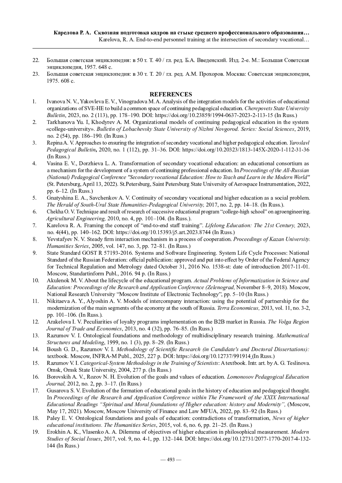 7. Карелова Р. А. Конструирование понятия «сквозная подготовка кадров» // Непрерывное образование: XXI век. 2023. № 4 (44). С. 140-162. https://doi.org/https://doi.org/10.15393/j5.art.2023.8744