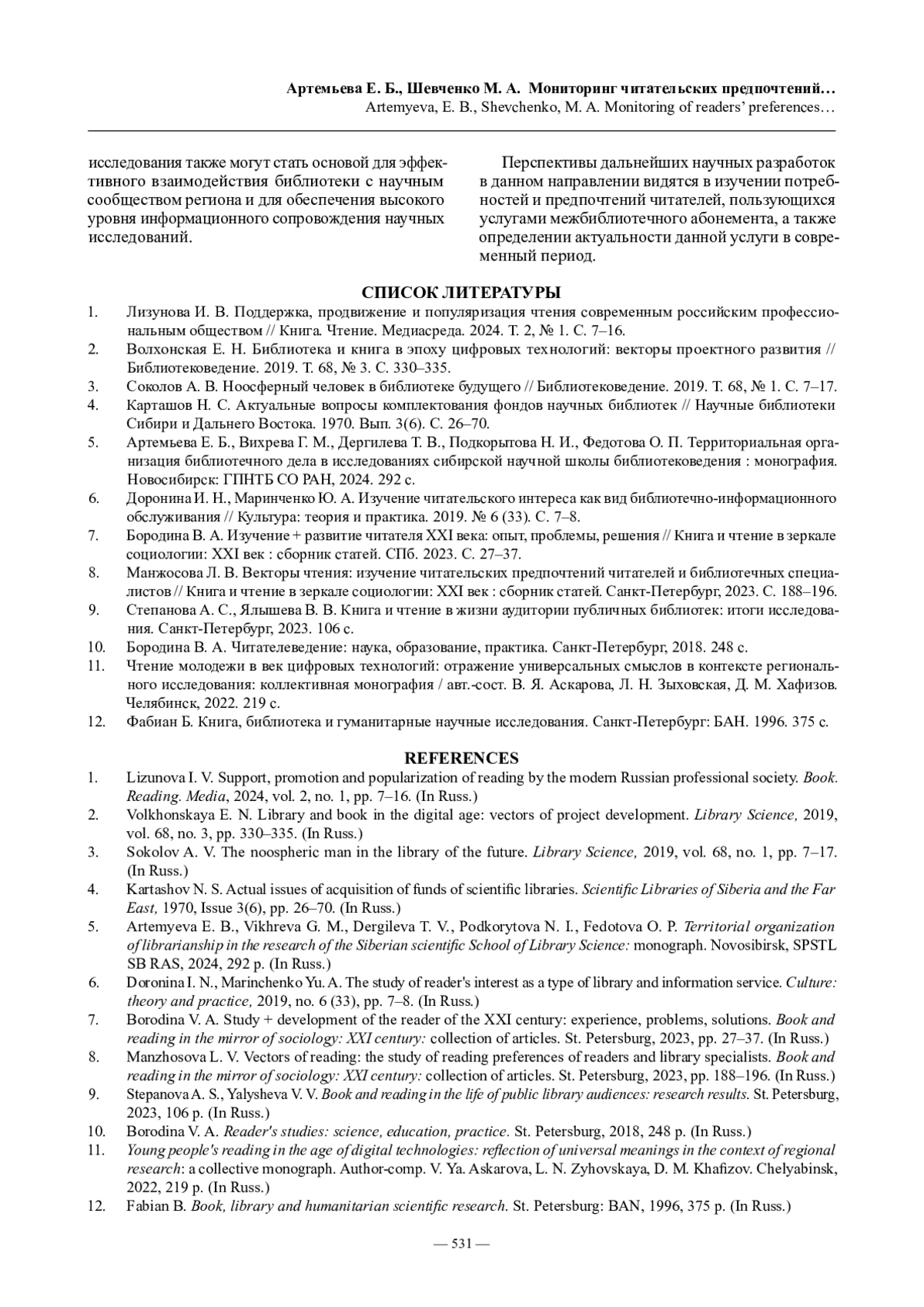 7. Бородина В. А. Изучение + развитие читателя XXI века: опыт, проблемы, решения // Книга и чтение в зеркале социологии: XXI век: сборник статей. СПб. 2023. С. 27-37.