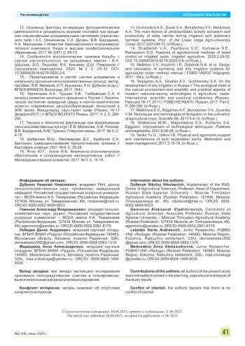 7. Новиков А.Е., Дранников А.В. Прецизионные технологии орошения в повышении устойчивости земледелия к природным изменениям // Орошаемое земледелие. 2024. № 4(47). С. 45-50.