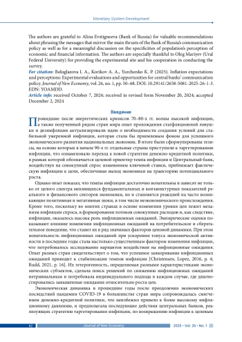 10. Раннева Н. А. (2019). К вопросу об инфляционных ожиданиях: современные подходы // Вопросы экономики. № 2. С. 54-80. DOI: 10.32609/0042-8736-2019-2-54-80 EDN: YVWAHJ
