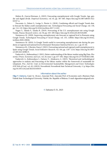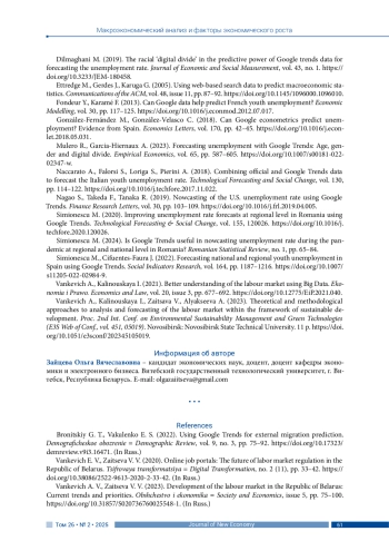 19. Dilmaghani M. (2019). The racial ‘digital divide’ in the predictive power of Google trends data for forecasting the unemployment rate. Journal of Economic and Social Measurement, vol. 43, no. 1. DOI: 10.3233/JEM-180458