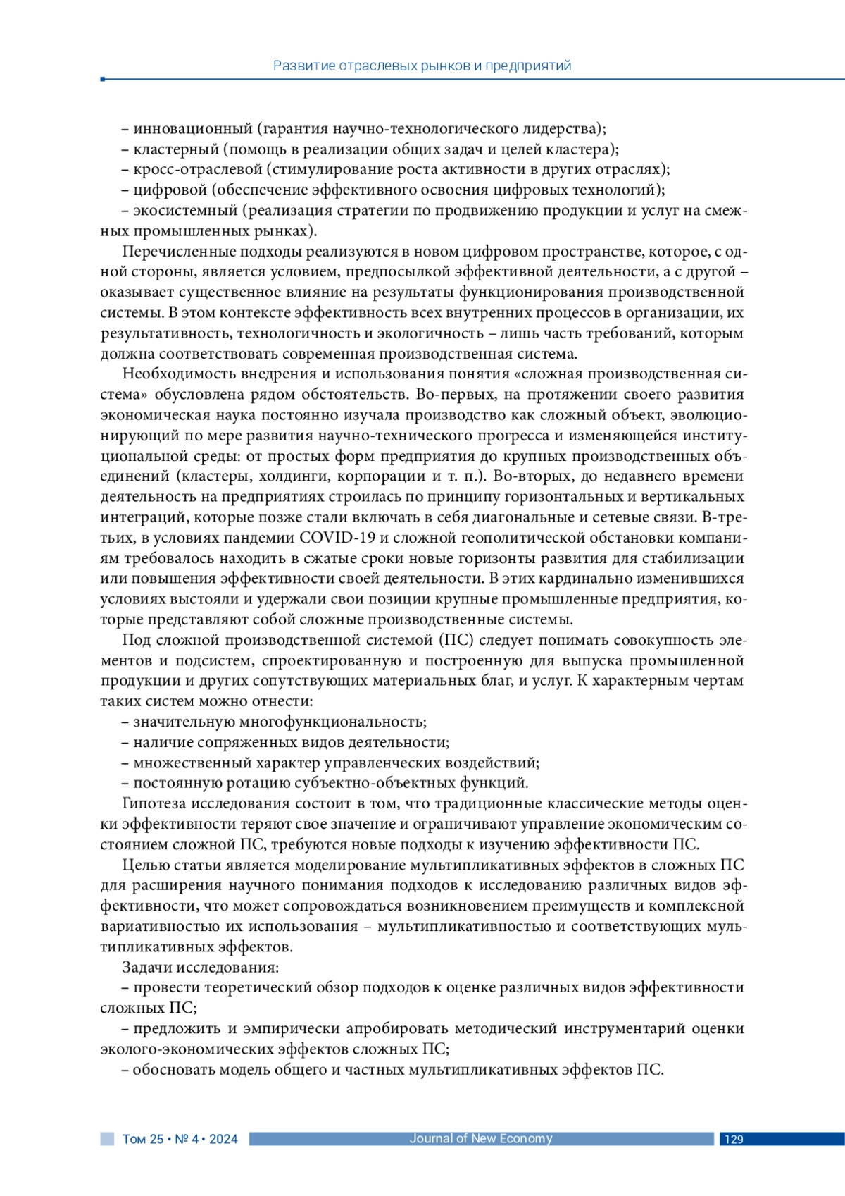 Стабильное функционирование и эффективное развитие производств входит в число ключевых экономических задач любого сильного государства. Деятельность предприятий должна учитывать новые экономические факторы: цифровую трансформацию институциональной среды; курс на эффективное государственное планирование; процессы неоиндустриализации страны; требования импортозамещения по многим производствам и товарам; изменчивость потребительского поведения; усиление и трансформацию конкуренции в новых геополитических реалиях. Так, сложилось несколько подходов к изучению экономической деятельности современного предприятия