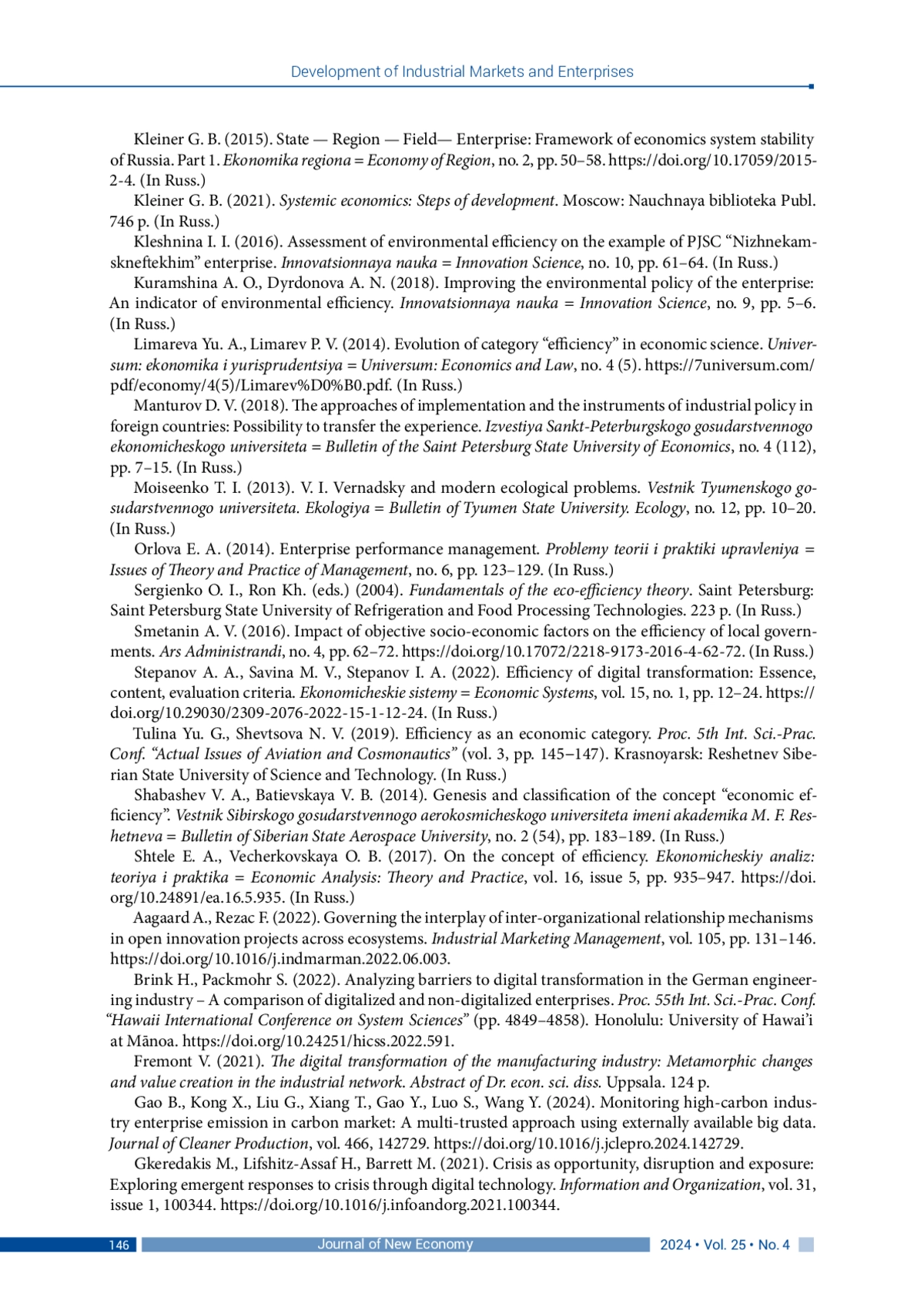 9. Клейнер Г. Б. (2021). Системная экономика: шаги развития: монография. Москва: Издательский дом “Научная библиотека”. 746 с.