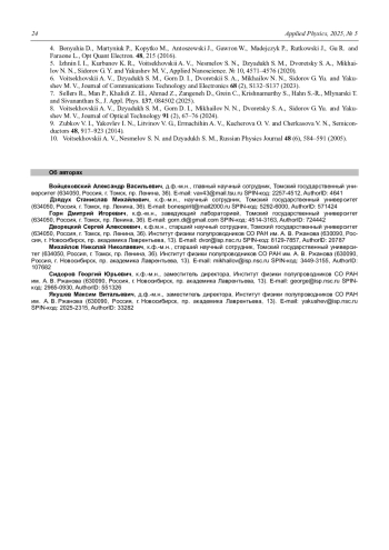 - Voitsekhovskii A. V., Dzyadukh S. M., Gorn D. I., Mikhailov N. N., Dvoretsky S. A., Sidorov G. Yu., Yakushev M. V. / Journal of Optical Technology. 2024. Vol. 91 (2). P. 67–76.