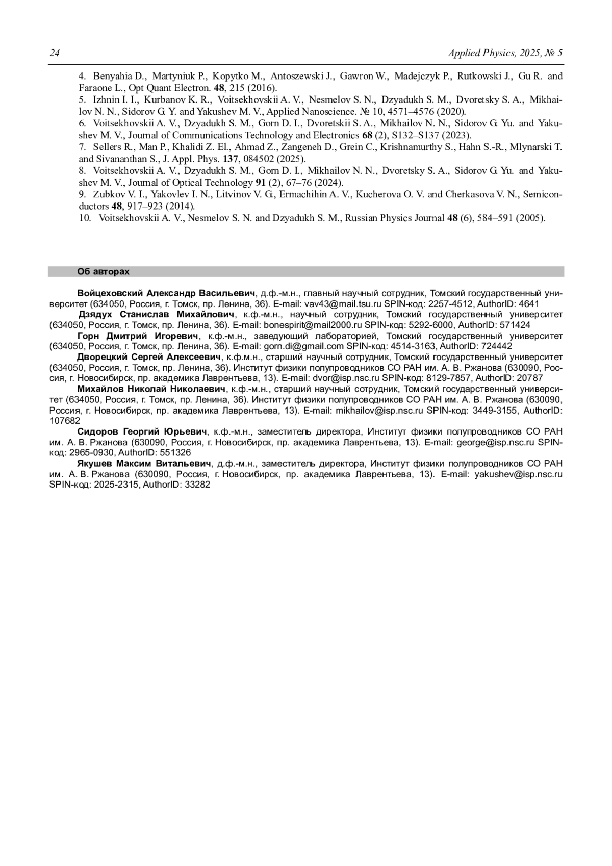 - Voitsekhovskii A. V., Nesmelov S. N., Dzyadukh S. M. / Russian Physics Journal. 2005. Vol. 48 (6). P. 584–591.