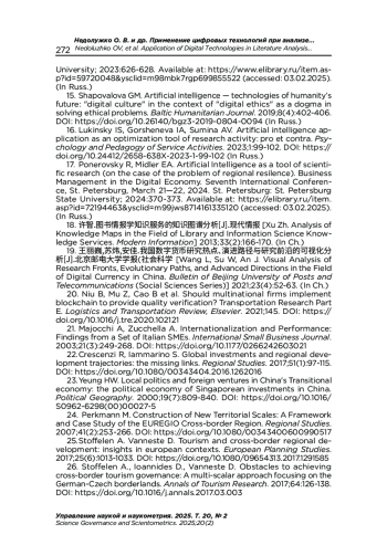 19. 王丽巍,苏炜,安佳.我国数字货币研究热点、演进路径与研究前沿的可视化分析[J].北京邮电大学学报(社会科学, 2021;23(04):52-63. [Ван Ливэй, Су Вэй, Ань Цзя. Визуализированный анализ исследовательских фронтов, эволюционного пути и передовых направлений в области цифровой валюты в Китае // Вестник Пекинского университета почты и телекоммуникаций (Серия общественных наук). 2021. Т. 23, № 4: С. 52-63].