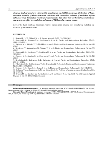Статья: Радиационная стойкость светоизлучающих структур с наноостровками Ge(Si) на подложках «кремний на изоляторе» (2025)