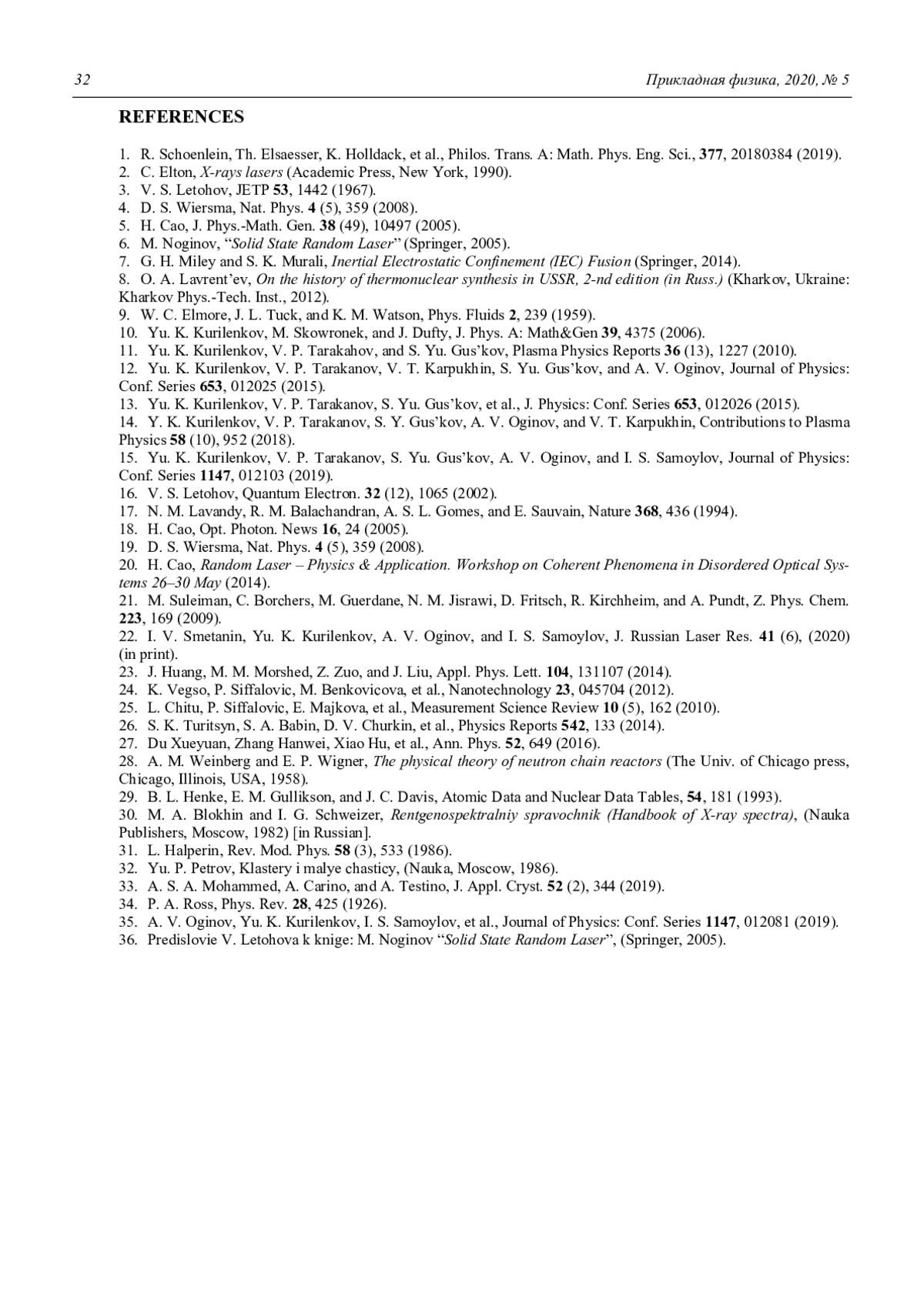 22. Smetanin I. V., Kurilenkov Yu. K., Oginov A. V., Samoylov I. S. // J. Russian Laser Res. 2020. Vol. 41. № 6 (в печати).