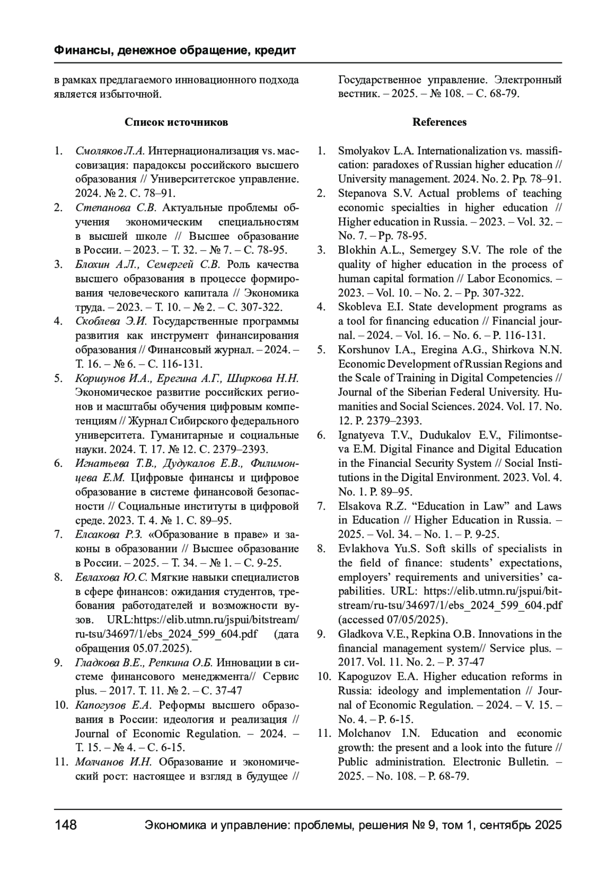 11. Молчанов И.Н. Образование и экономический рост: настоящее и взгляд в будущее // Государственное управление. Электронный вестник. - 2025. - № 108. - С. 68-79. EDN: NHSGHG