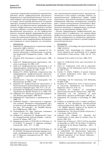 8. Крюкова Н.И. Профессиональная преступность в России (источники возникновения, развития и становления) // Мировой судья. 2015. N 4. С. 18 - 23. EDN: TPUBLN