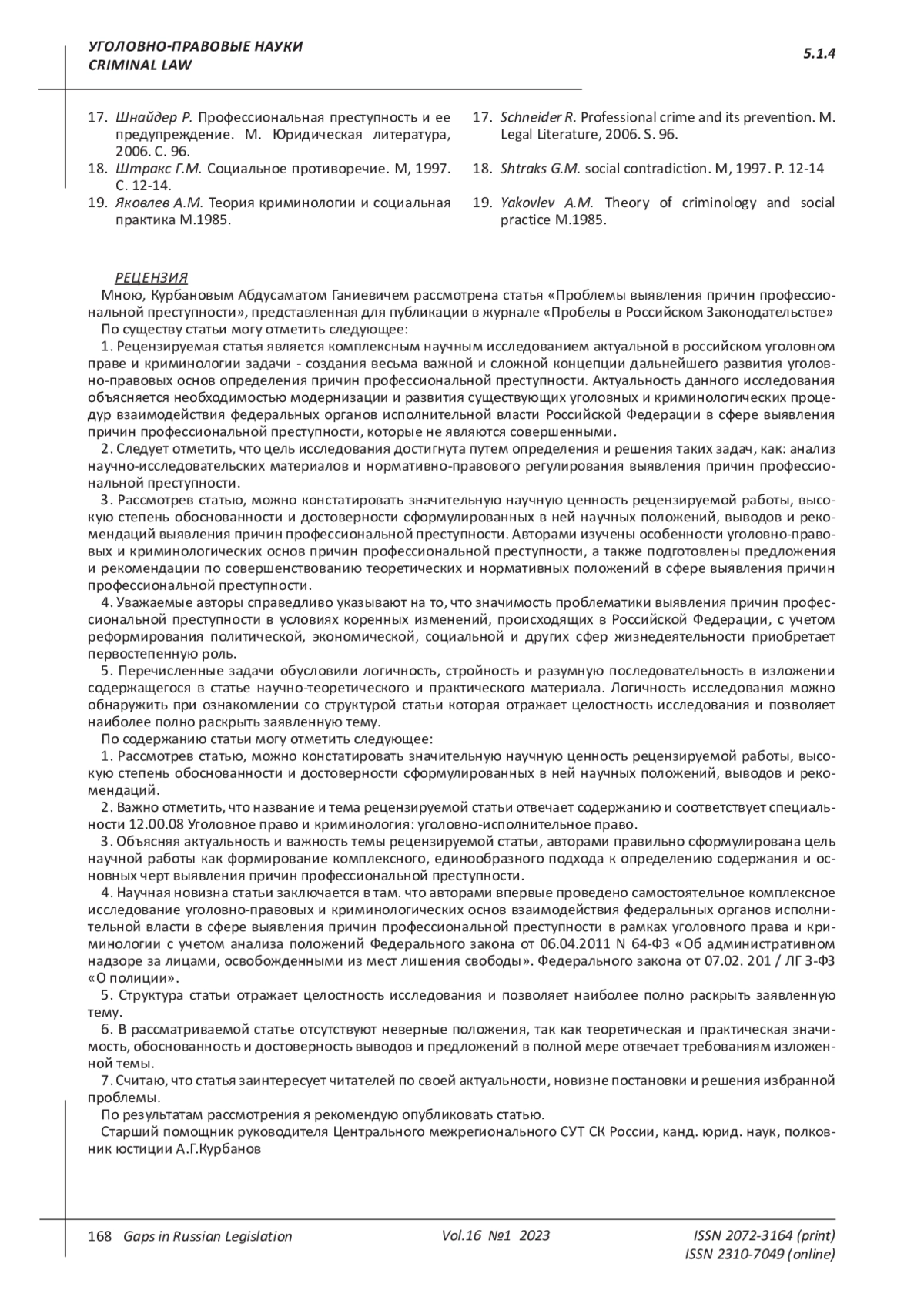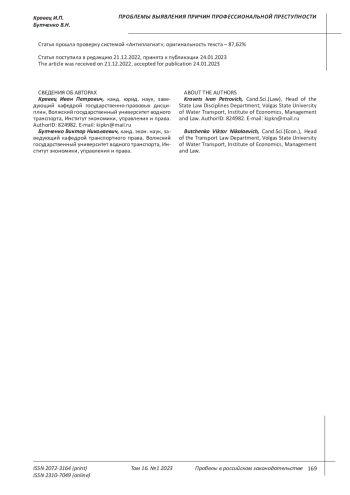 6. Кравец И.П., (2022), Проблемы специальных мер предупреждения профессиональной преступности. Пробелы в российском законодательстве, 2: 134-143. EDN: PZUKUF