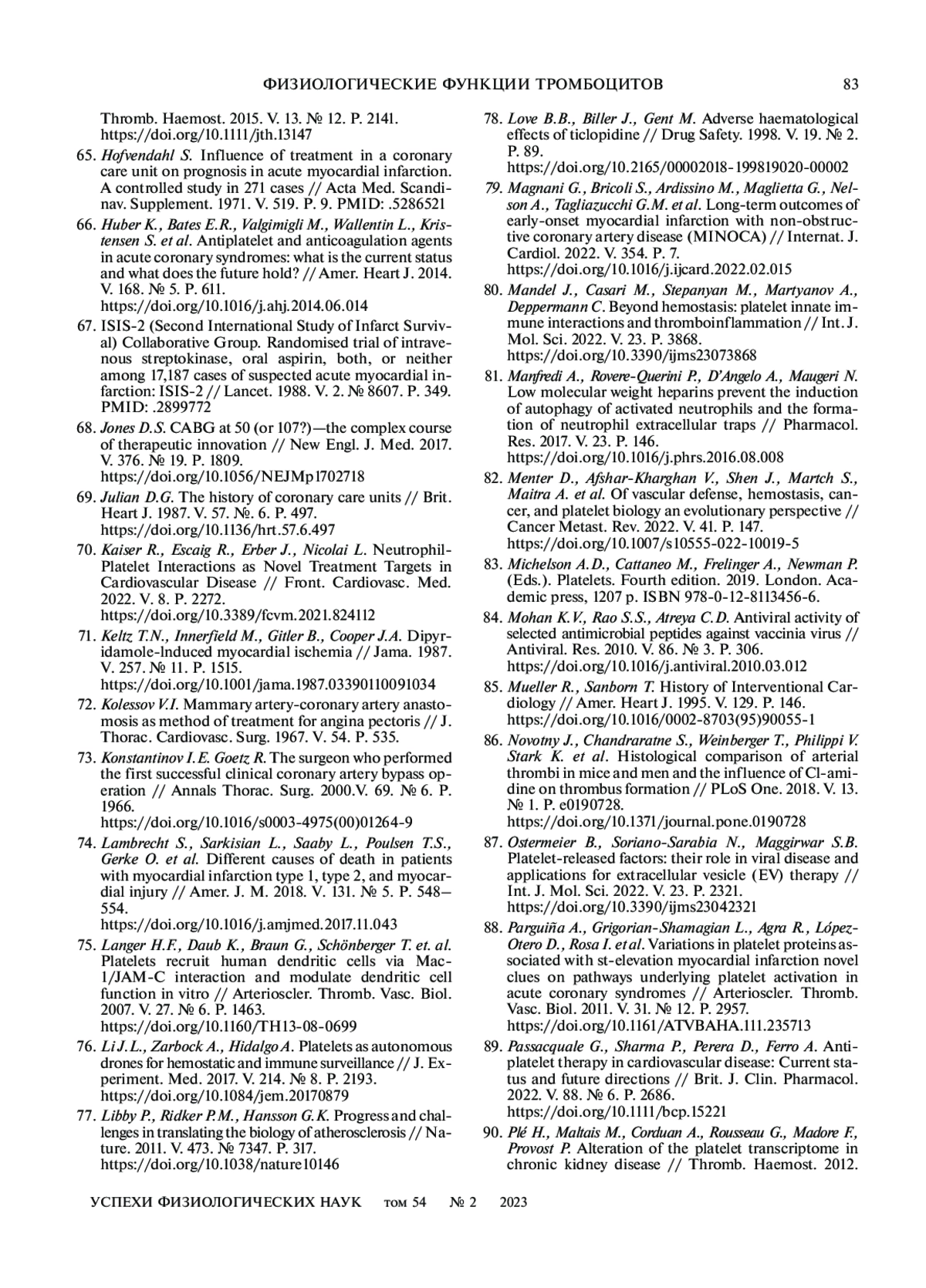 Статья: ФИЗИОЛОГИЧЕСКИЕ ФУНКЦИИ ТРОМБОЦИТОВ И ЗНАЧЕНИЕ КОРРЕКЦИИ ИХ НАРУШЕНИЙ ПРИ ОСТРОМ КОРОНАРНОМ СИНДРОМЕ (2023)