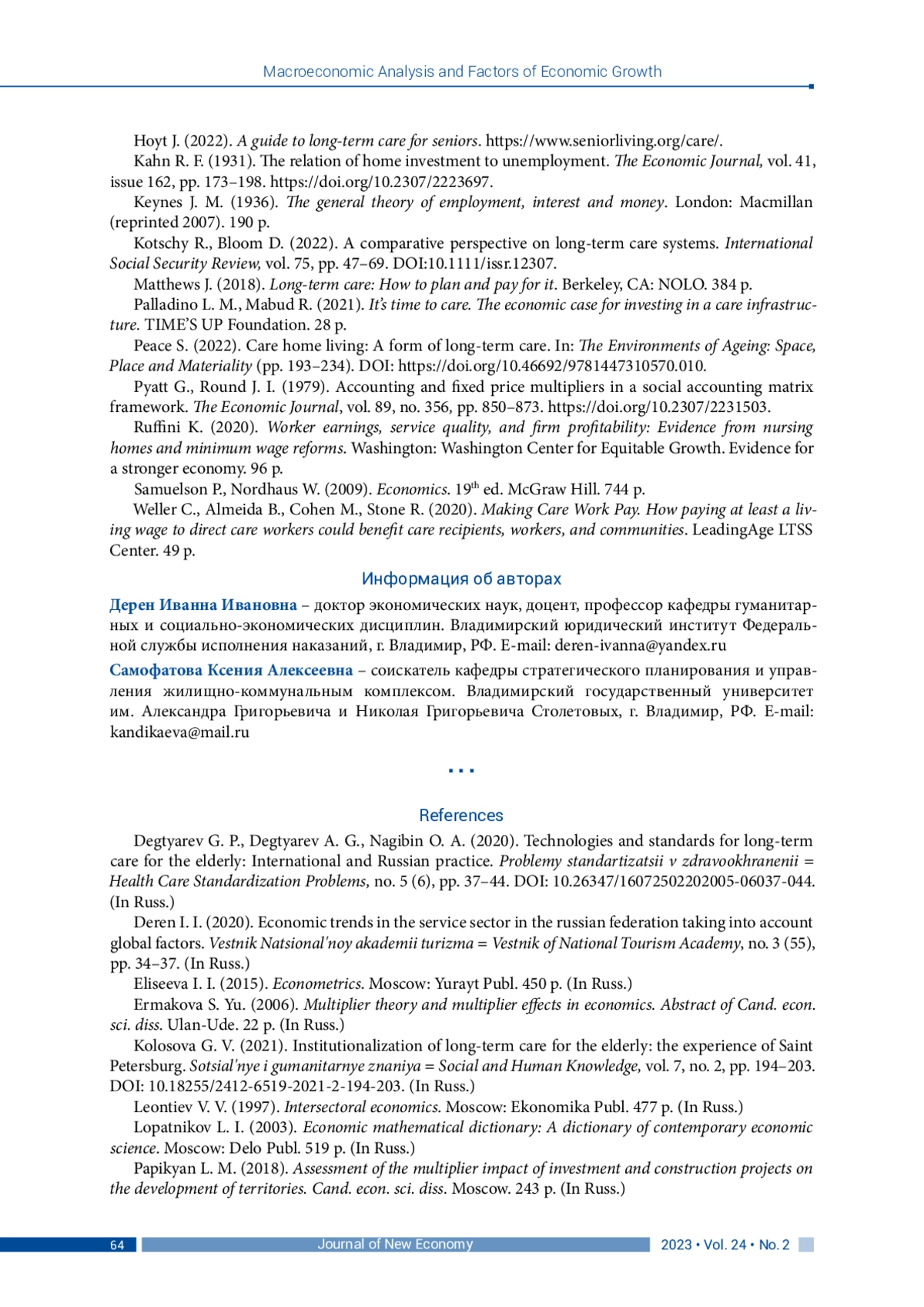 5. Колосова Г. В. (2021). Институционализация долговременного ухода за пожилыми: опыт Санкт-Петербурга // Социальные и гуманитарные знания. Т. 7, № 2. С. 194-203. 10.18255/2412- 6519-2021-2-194-203. DOI: 10.18255/2412-6519-2021-2-194-203 EDN: XENAEP