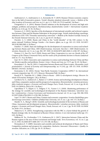 29. Gao J. (2021). Sino-Russian cooperation in science and technology innovation: Model reconstruction and path selection. Russian Eastern European and Central Asian Studies, no. 3, pp. 97-115.