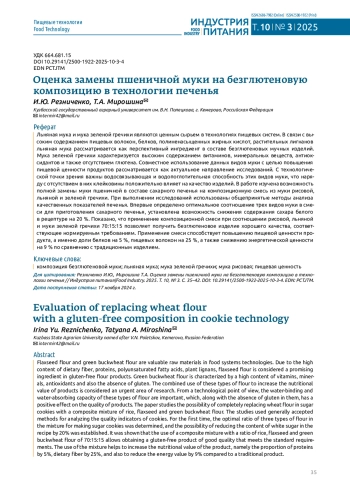 15. Merker, A.A.; Reva, E.N.; Serdyuk V.A. The influence of gluten-free flour on bakery dough quality. Engineering Technologies and Systems. 2022. Vol. 32, iss. 2. Pp. 313-323. 10.15507/2658-4123.032.202202.313-323. DOI: 10.15507/2658-4123.032.202202.313-323.EDN EDN: SWLBTL