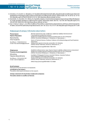 19. Габдукаева Л.З. Разработка технологии мучных кондитерских изделий, обогащенных эссенциальными нутриентами // Хранение и переработка сельхозсырья. 2024. Т. 32, № 2. С. 116-132. 10.36107/spfp.2024.2.457. DOI: 10.36107/spfp.2024.2.457.EDN EDN: HAVMOF