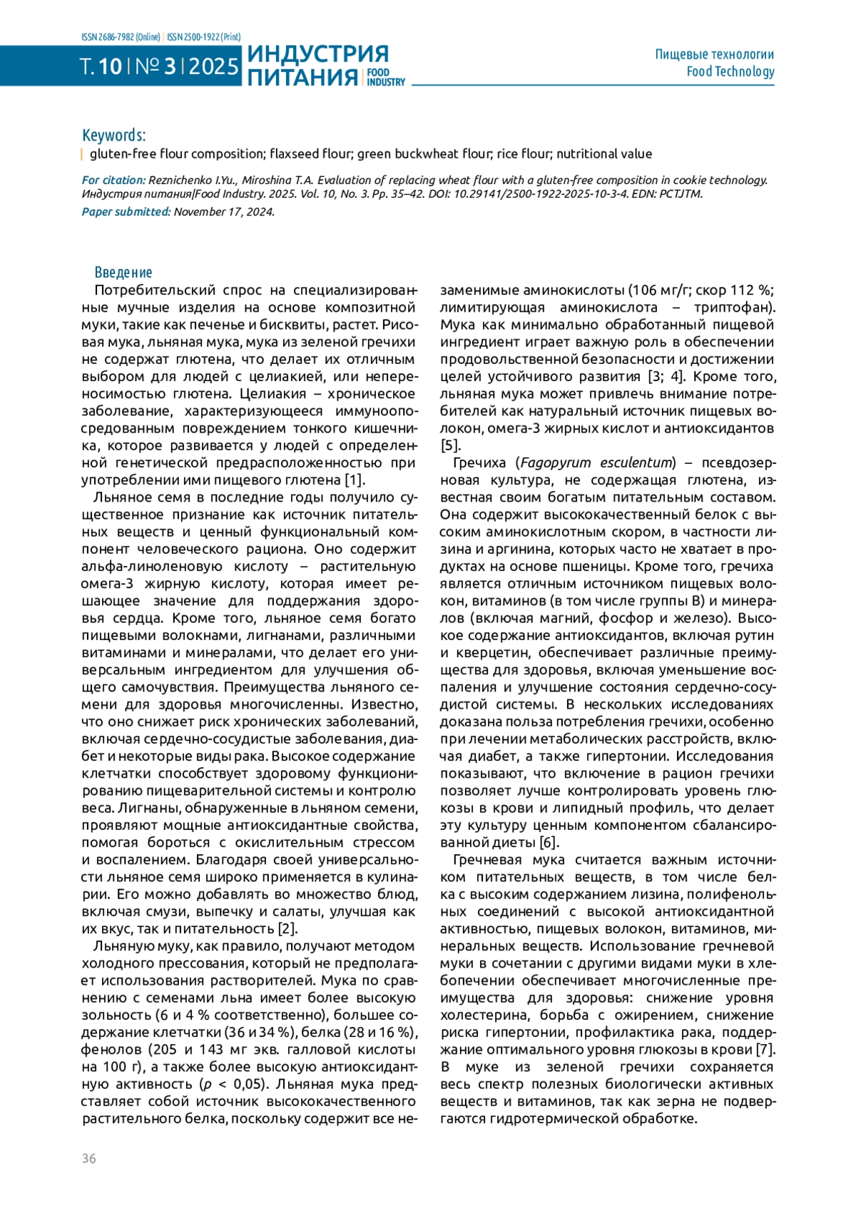 7. Резниченко И.Ю., Мирошина Т.А. Современные виды безглютенового сырья: перспективы применения в технологии мучных кондитерских изделий // Вестник КрасГАУ. 2024. № 6(207). С. 212-219. 10.36718/1819-4036-2024-6-212-219. DOI: 10.36718/1819-4036-2024-6-212-219.EDN EDN: YZCTZV