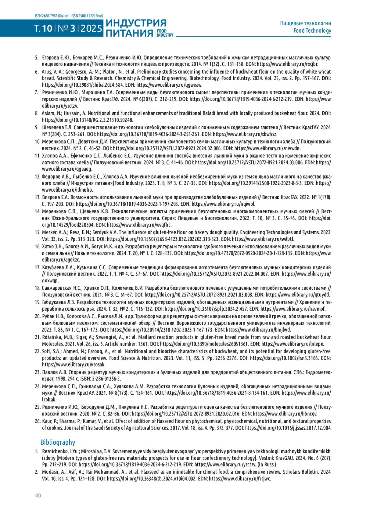 25. Резниченко И.Ю., Бородулин Д.М., Пикулина Н.С. Разработка рецептуры и оценка качества безглютенового мучного изделия // Ползуновский вестник. 2020. № 2. С. 82-86. 10.25712/ASTU.2072-8921.2020.02.016. DOI: 10.25712/ASTU.2072-8921.2020.02.016.EDN EDN: HBNCQV